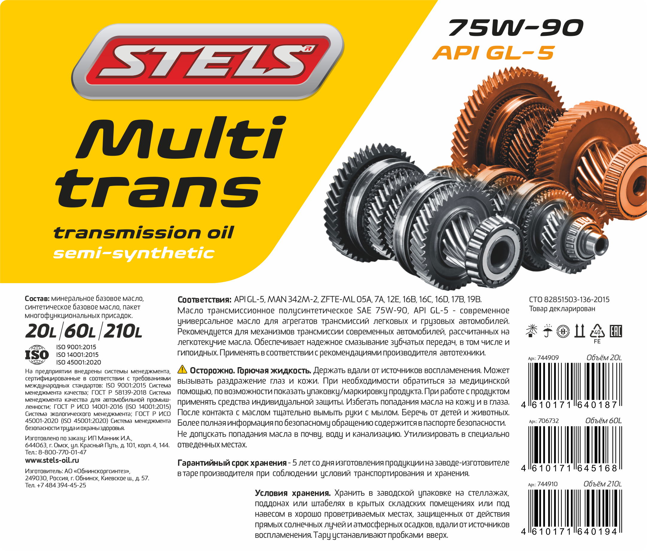 Масло трансмиссионное STELS Multitrans 75w-90 GL-5 1л розлив из бочонка