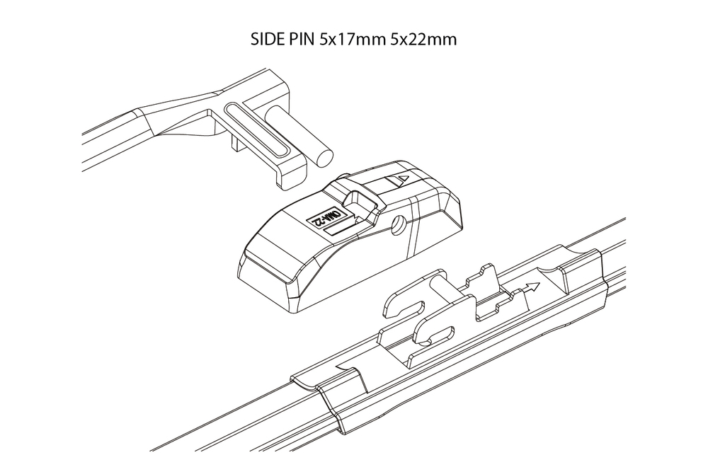 Адаптер для щёток стеклоочистителя OSAWA. Тип крепления - SIDE PIN 5x17mm/5x22mm.